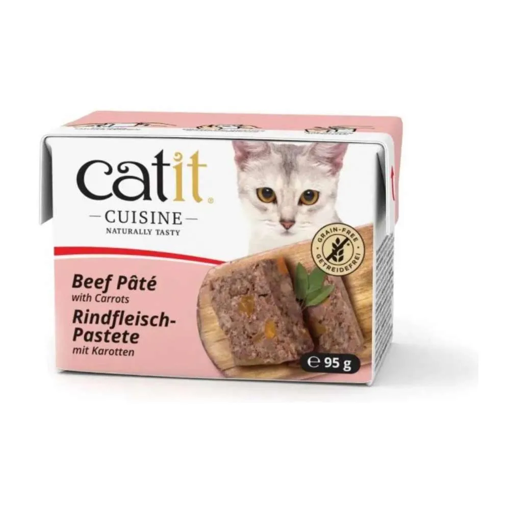 Η Τροφή Γάτας Με Βοδινό & Καρότα προσφέρει στη γάτα του σπιτιού σας μια ακαταμάχητη γευστική εμπειρία. Αυτό το ζουμερό πατέ είναι πλούσιο σε υψηλής ποιότητας κρέας, ψάρι και πουλερικά, γεγονός που το καθιστά ιδιαίτερα γευστικό. Η συνταγή χωρίς δημητριακά και γλουτένη εξασφαλίζει εύκολη πέψη και είναι ιδανική για ευαίσθητες γάτες.